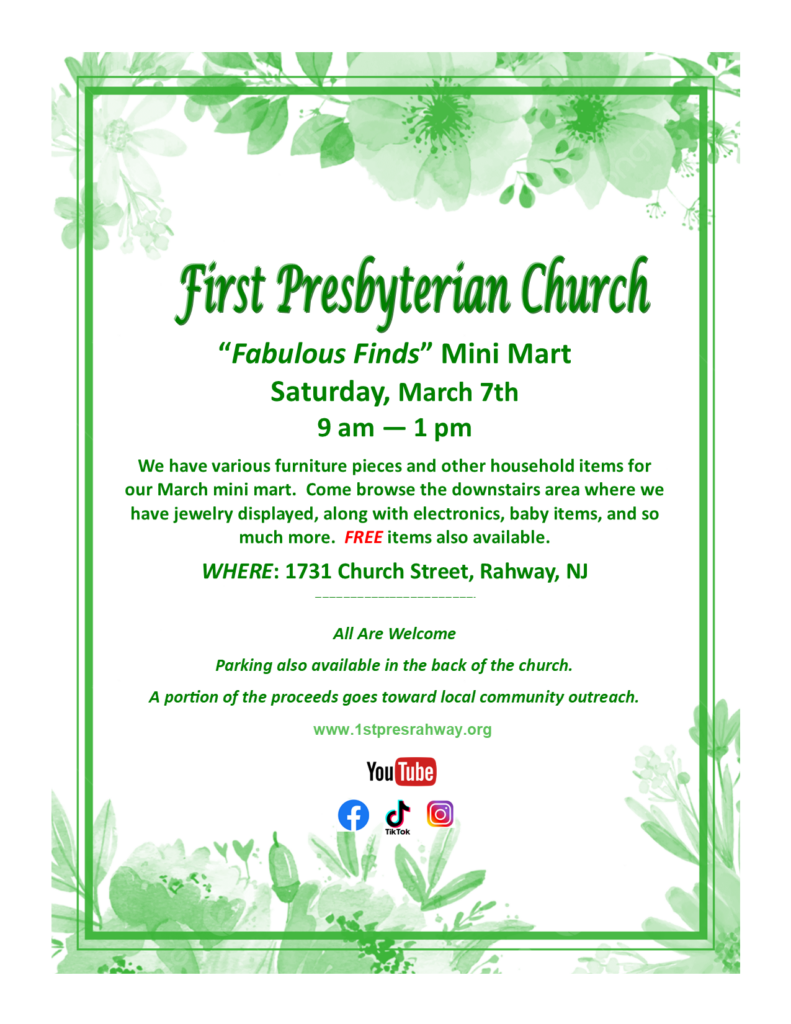 If you have any furniture to donate, please take a photo of what you have and send the photos to office@1stpresrahway.org. At this time, we’re not accepting clothes or shoes.